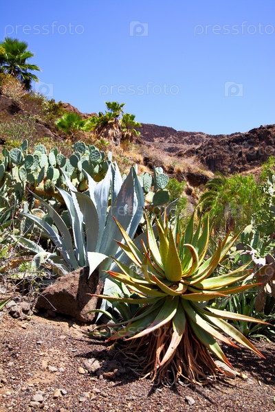 Кактус агава в пустыне крупным планом