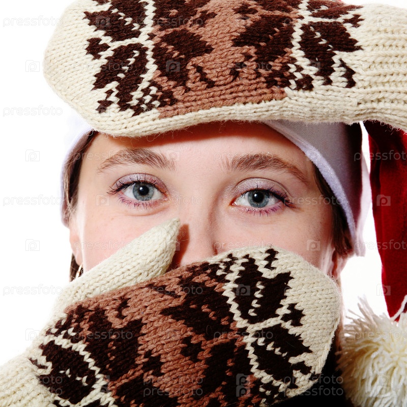 Симпатичная девушка в шерстяных варежках