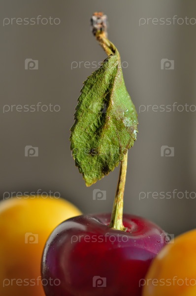 Красные и желтые вишни крупным планом