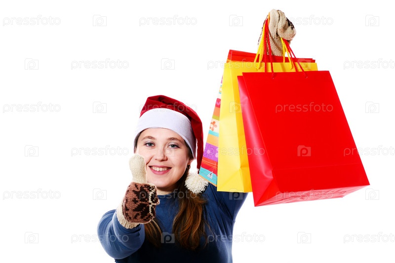 Девушка в колпаке Санты с подарками