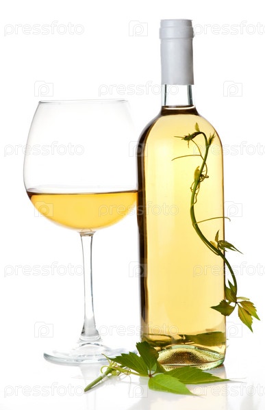 Бутылка белого вина и бокал