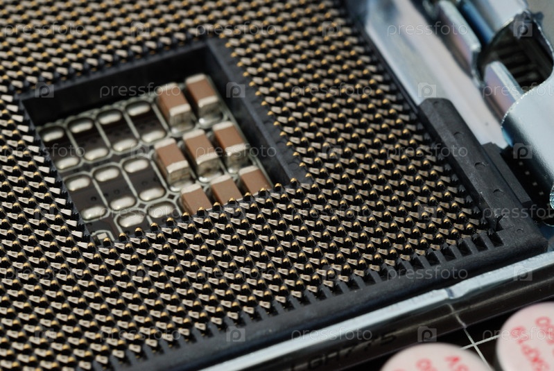 Розетка компьютерной материнской платы, электронные компоненты на печатной плате