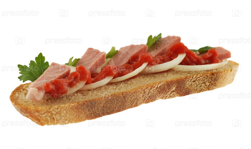 Бутерброд с мясом, зеленью и кетчупом