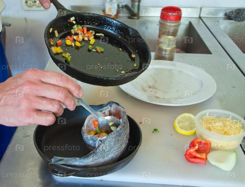 Процесс приготовления фаршированной рыбы