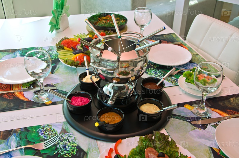Тарелка с фондю, оформленная для вечеринки