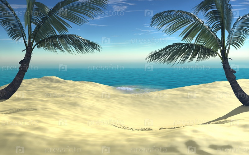 Тропический пляж с двумя пальмами