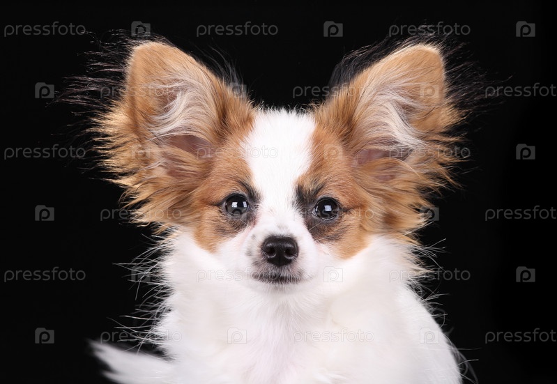 Щенок папильона на черном фоне