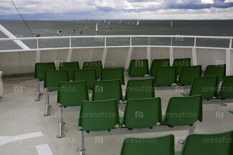 Зеленые кресла на палубе яхты в море