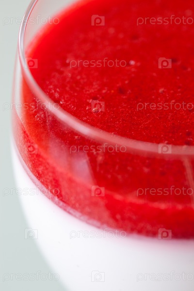 Итальянский десерт панна котта с клубничным сиропом