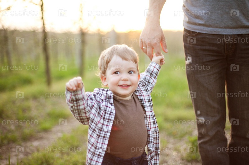Портрет счастливого отца с маленьким сыном на природе