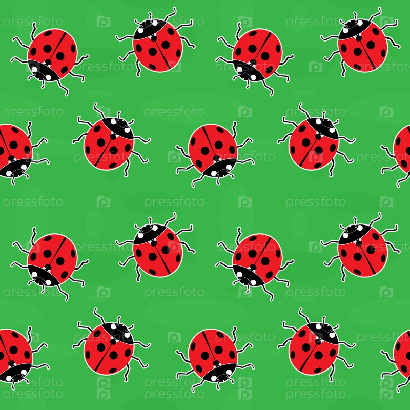 Бесшовный зеленый фон с божьими коровками