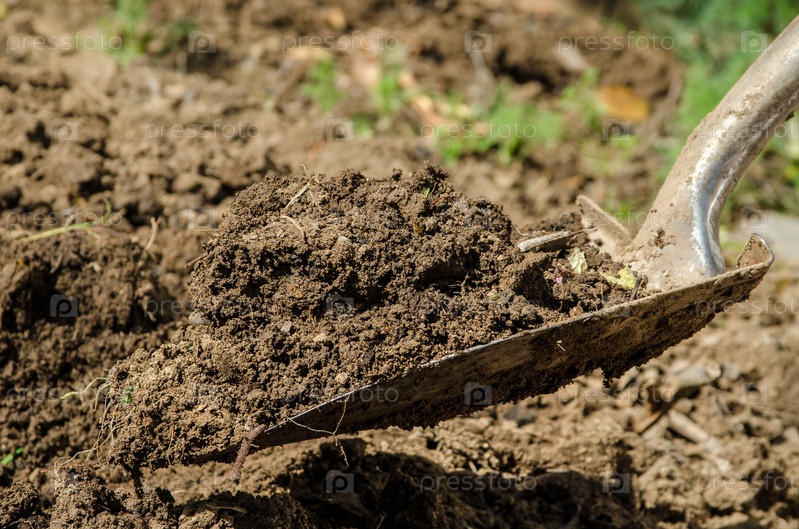 Лопата, полная земли, крупным планом