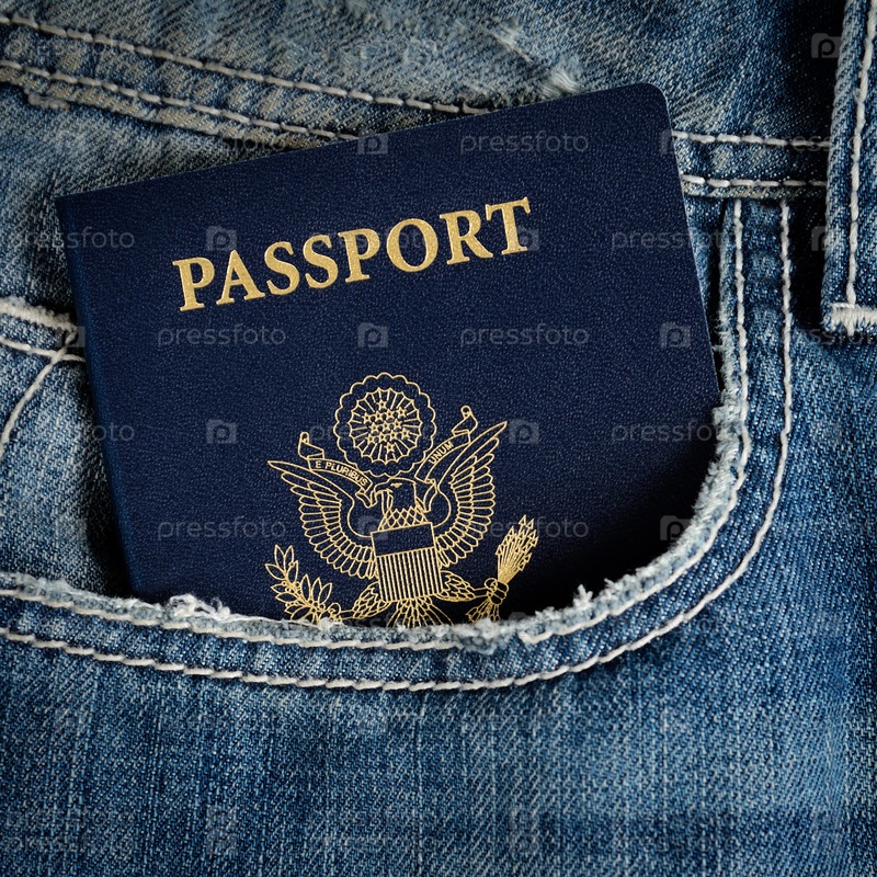 Синий американский паспорт в кармане джинсов