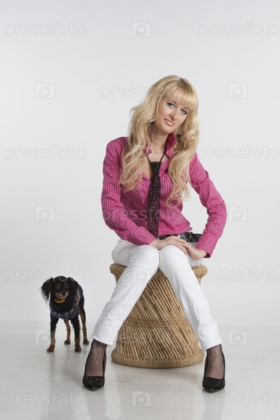 Гламурная девушка с маленькой собачкой