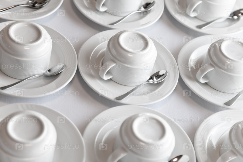 Белый чистый фарфоровой чайный сервиз на столе
