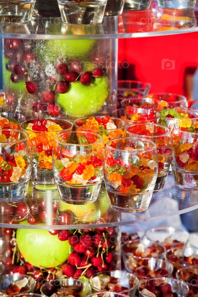 Сладкие мармеладные мишки и свежие фрукты