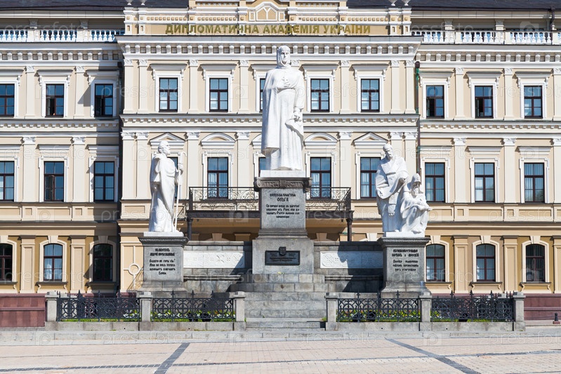 Памятники принцессе Ольге, Андрею Первозванному и Апостолам Кириллу и Мефодию и здание Украинской дипломатической академии в Киеве, Украина