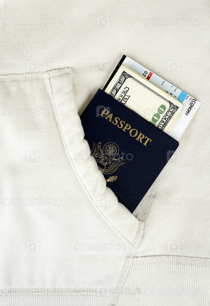 Паспорт США, посадочный талон и деньги в кармане