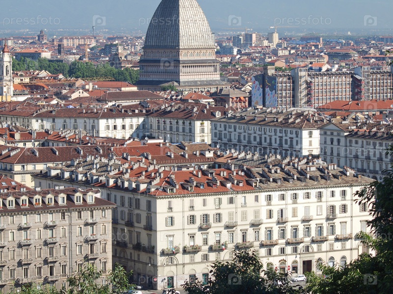Вид города Турина с холма