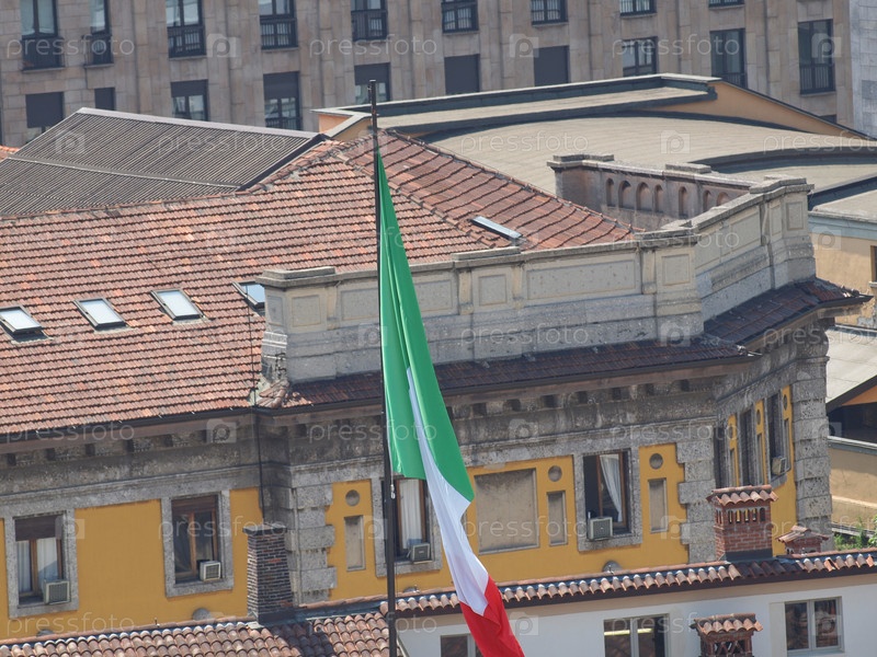 Итальянский флаг на крыше Королевского дворца в Милане, Италия