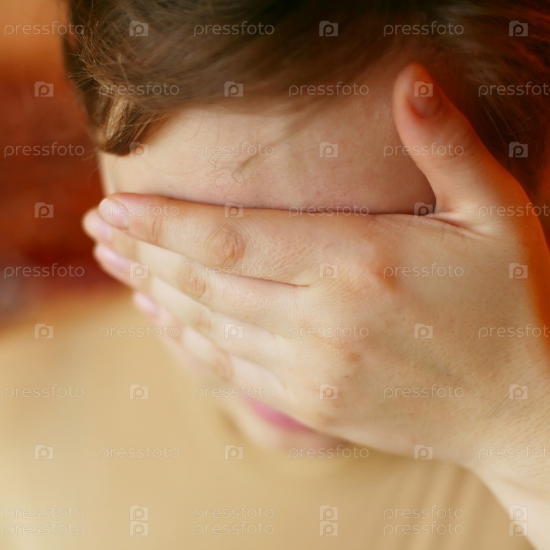 Женщина с руками на лице