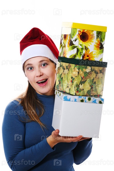 Девушка в колпаке Санты с подарками