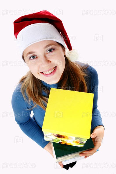 Девушка в колпаке Санты с подарками