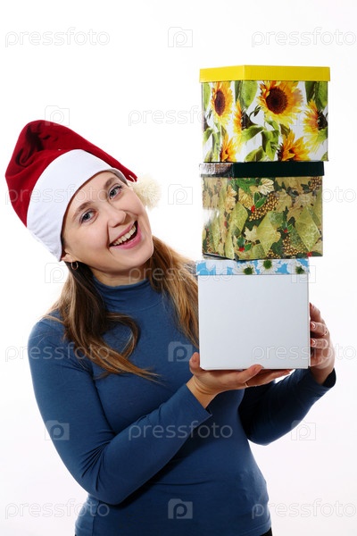 Девушка в колпаке Санты с подарками