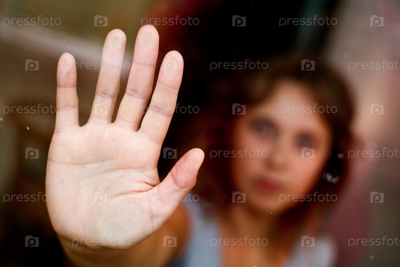 Одинокая женщина в окне. Рука крупным планом