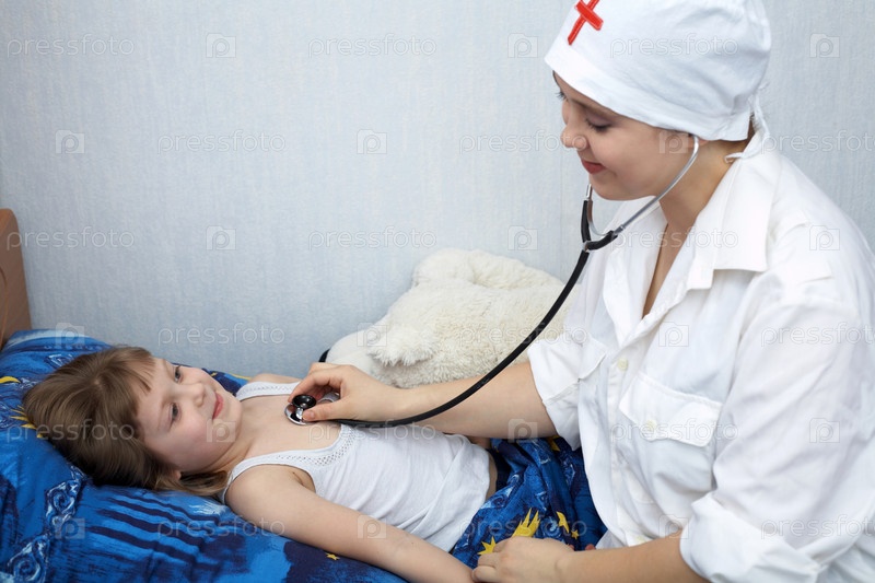 Врач осматривает симпатичную девочку