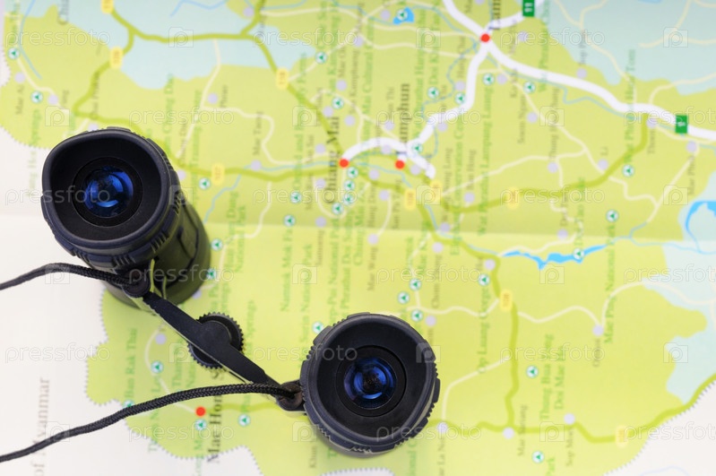 Концепция поездки в Таиланд - бинокль на тайский карте