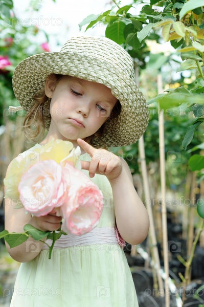 Маленькая девочка с букетом роз