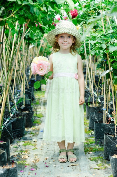 Маленькая девочка с букетом роз