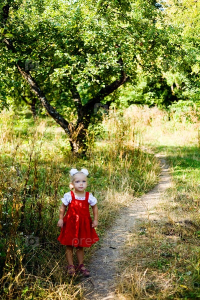 Маленькая девочка стоит на тропинке