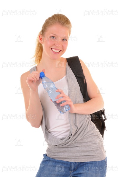 Симпатичная девушка с бутылкой чистой воды