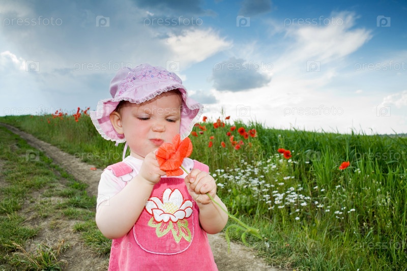 Девочка в поле с красными маками