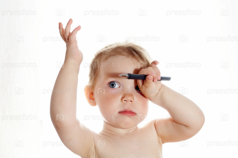 Девочка на белом фоне с ручкой