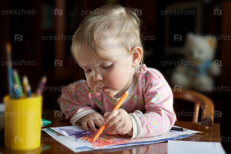 Девочка рисует карандашом