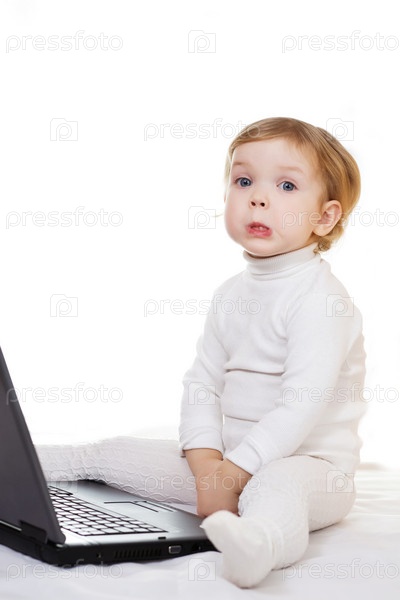 Маленькая девочка с ноутбуком