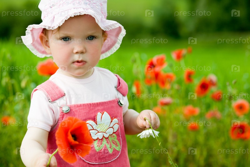 Девочка в поле с красными маками