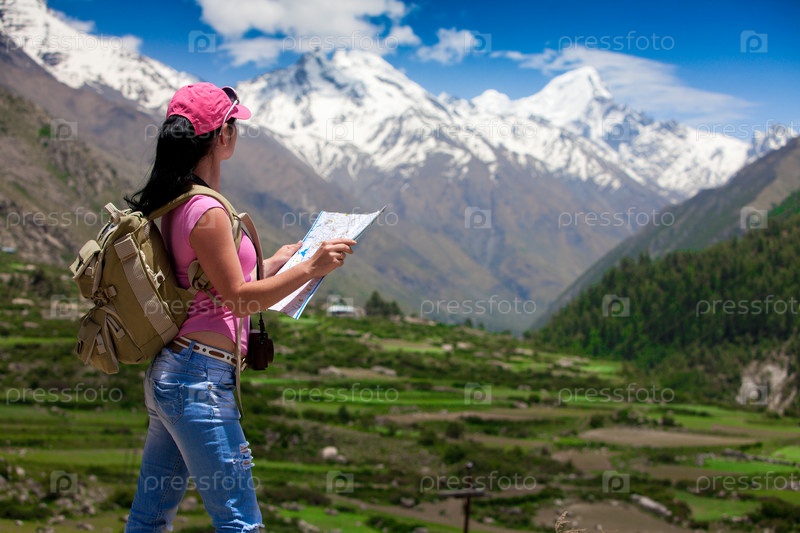 Женщина-путешественник смотрит вдаль