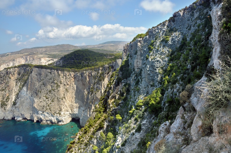 Скалистые прибрежные горы, вид с маяка деревни Кери, остров Закинтос, Греция