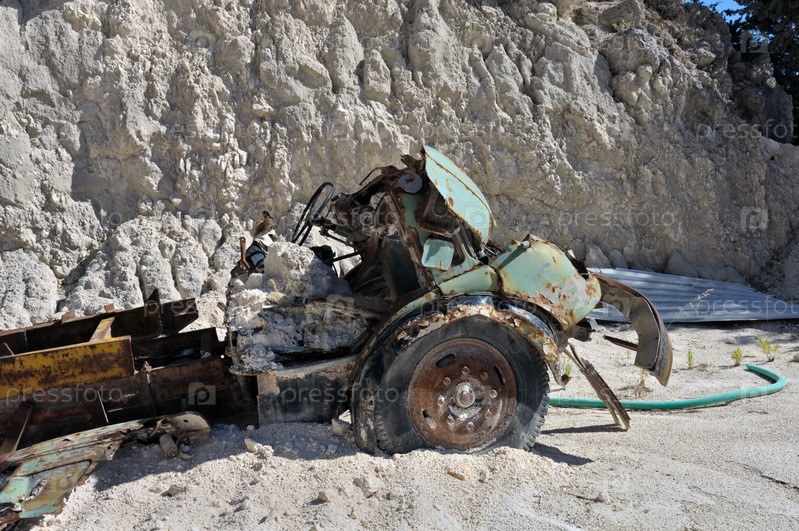 Ржавые старый автомобиль похоронен в песке на гравийном карьере