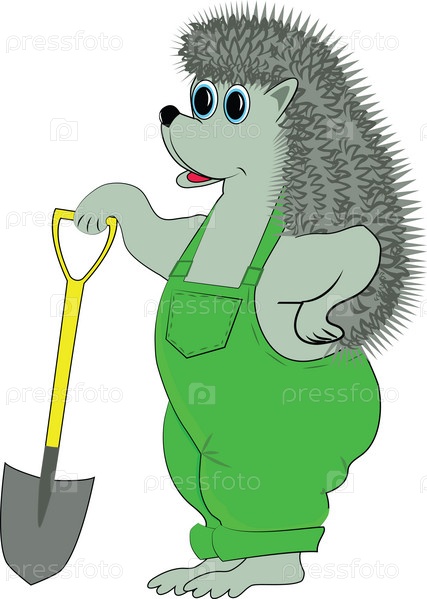 Забавный еж-строитель с лопатой