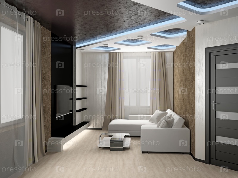 Современный интерьер гостиной, 3D