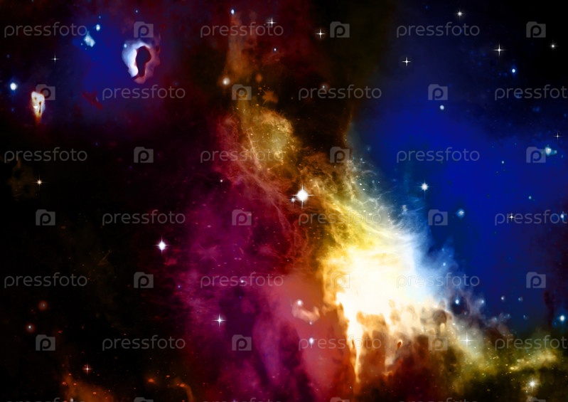 Далекая светящаяся туманность и звездное поле в пространстве