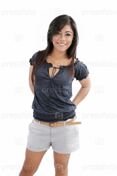 Красивая девушка улыбается и смотрит в камеру, изолированная на белом фоне