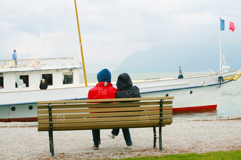 Пара наблюдает за лодкой зимой