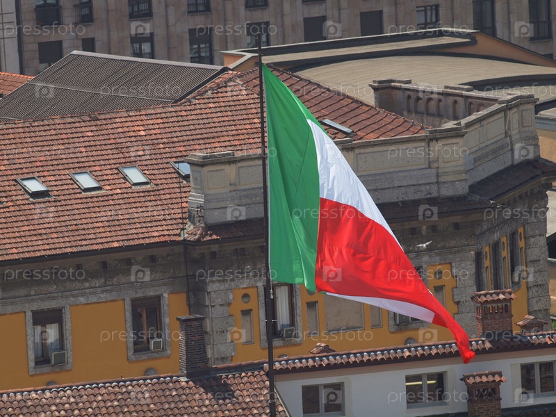 Итальянский флаг на крыше Королевского дворца в Милане в Италии