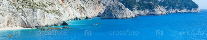 Панорама красивого летнего побережья на пляже Порто-Кацики, Ионическое море, Лефкас, Греция